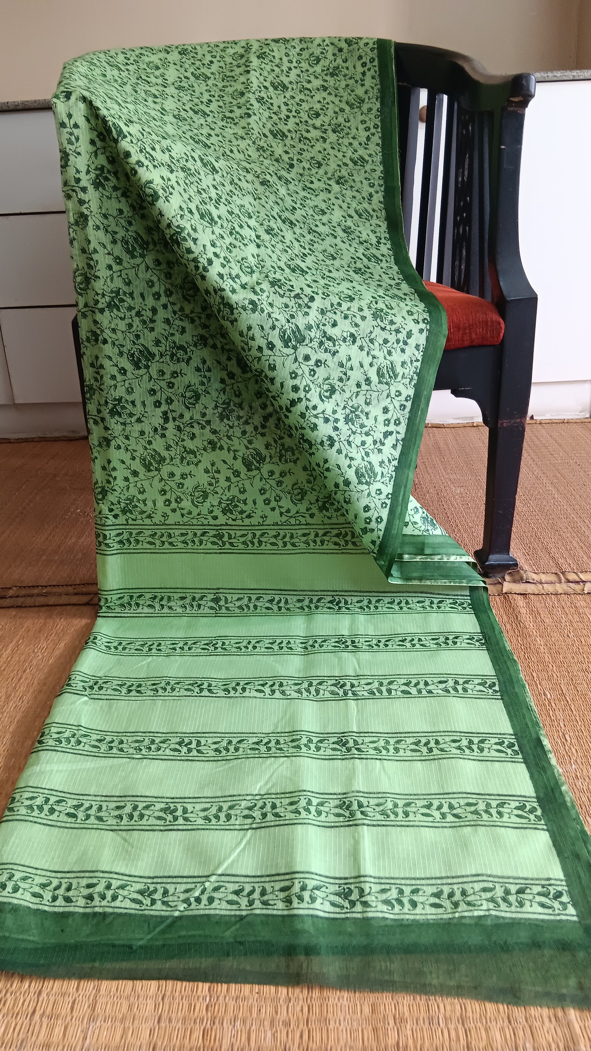 Slip into effortless comfort with this refreshing green kota cotton saree, your new essential for everyday elegance. Lightweight and wonderfully breathable, this saree keeps you cool and breezy throughout the day while maintaining a polished, put-together look. The serene green hue complements all skin tones and pairs beautifully with your existing wardrobe, making it incredibly versatile for any occasion. Perfect for busy days when you want to look great without any fuss, this daily wear staple combines practical comfort with timeless style. Experience the freedom of moving through your day in fabric that feels as good as it looks.