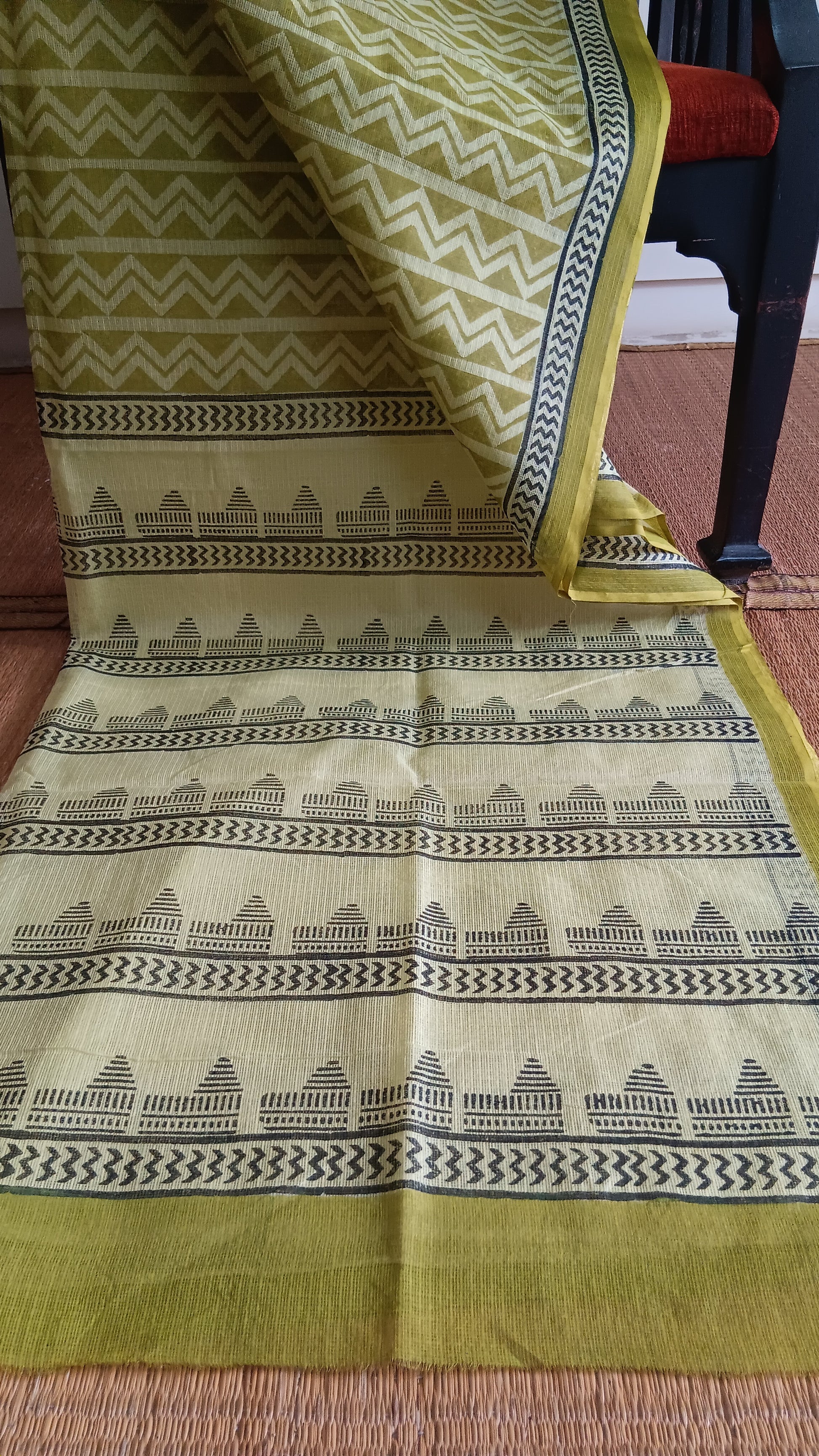 Embrace understated sophistication with this captivating green kota cotton saree, hand block printed with authentic traditional motifs. The lightweight fabric offers exceptional breathability and comfort, making it perfect for everyday elegance without compromise. This saree exudes cool confidence—a quiet assurance that comes from knowing you're wearing something truly special. Whether you're navigating your professional life or enjoying leisurely moments, the versatile green hue complements any complexion while the impeccable craftsmanship ensures you always look polished and put-together. Invest in a piece that celebrates heritage while delivering modern comfort and timeless appeal.